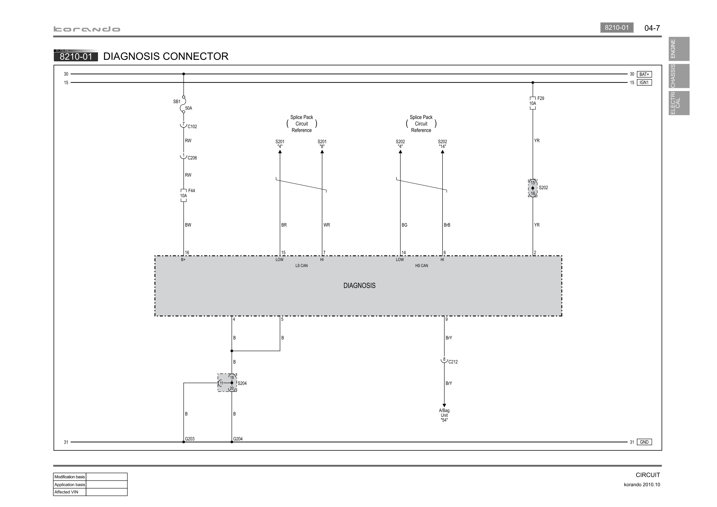 - On SsangYong Korando-C (New Actyon) and Tivoli/XLV (up to X117), this problem may be associated with non-standard pinout of the diagnostic connector. These vehicles have two CAN buses: one is the standard P-CAN, located on pins 6-14, and the second is B-CAN (Low Speed CAN), which SsangYong engineers connected to pins 7-15 of the diagnostic connector. This pinout violates the SAE J1962 standard.